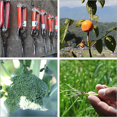 無洗米を作る工程でできた有機質肥料「米の精」を使った循環型農業に取り組んでいます。 主に柿や玉ねぎ、キャベツを生産しています。山間の高地で作っている野菜は寒暖の差で旨みたっぷり、柿を使ったフルーツ菓子にも挑戦中です。