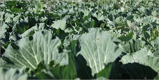 山間の高地で作っているキャベツ。「そろそろ穫ってや」と言うキャベツの声に耳を傾けながら収穫してます。