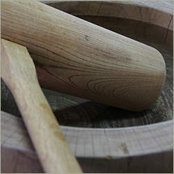 自家製米と、季節の野菜で杵付き餅を作ります。運が良ければ「五條 源兵衛」さんで食べられますよ。