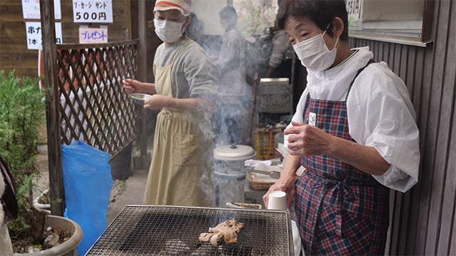 炭火で焼く豚肉の煙がタマリマセン