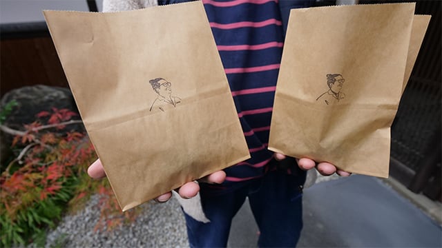 店主の顔スタンプの紙袋の中にはレモンが!