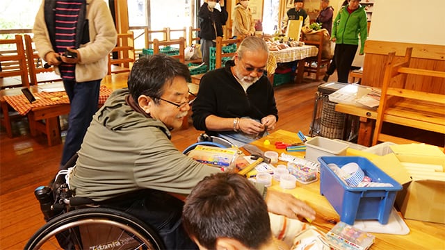 万華鏡作りに子供達もワクワク
