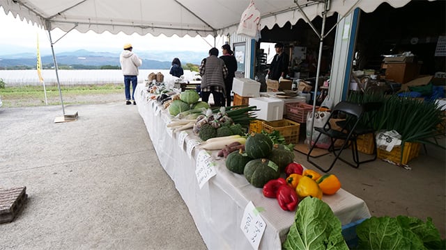 新米や色んな種類の野菜達がお出迎え!